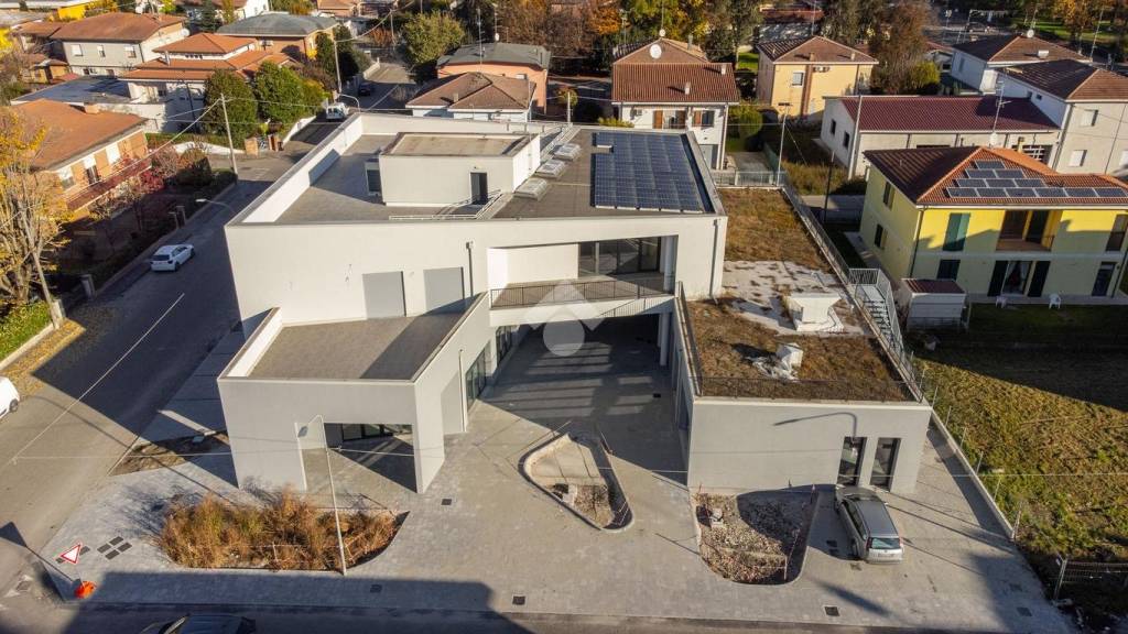 COSA SAPERE DELL'IMMOBILE A Rovereto sul Secchia, nel cuore del centro abitato, proponiamo in locazione ufficio di 270 mq. circa calpestabili posto al primo piano con ascensore, con ingresso semi-indipendente dal piano terra, oltre a terrazzo di 30 mq. circa al piano e ulteriore ampio terrazzo in copertura, in fabbricato polifunzionale indipendente di nuova costruzione, con area cortiliva di pertinenza e ampia disponibilità di parcheggio. DESCRIZIONE E PARTICOLARITA' Il fabbricato di cui fa parte l'unità immobiliare è stato demolito e ricostruito post sisma e attualmente è in fase di ultimazione. La ricostruzione ha consentito di innovare le caratteristiche dell'immobile, dotandolo di finiture moderne, che rendono il complesso immediatamente riconoscibile, di un elevato isolamento termico e acustico, nonché di impiantistica completa a norma di ultima generazione; fattori che consentiranno ai futuri utilizzatori degli spazi del fabbricato di beneficiare di un'elevata vivibilità degli ambienti e di un considerevole risparmio sui consumi energetici. L'immobile è dotato di ampie vetrate, che offrono grande luminosità ai locali. L'unità è posta al primo piano del complesso e ha una superficie di 270 mq. circa calpestabili, oltre a terrazzo di 30 mq. circa al piano e ulteriore ampio terrazzo in copertura. UBICAZIONE E CONTESTO L'immobile si trova nel pieno centro di Rovereto, all'angolo tra Via Mazzini/Via Boccaccio/Via Petrarca, a 50 metri da Via Chiesa Nord (strada principale che attraversa il centro della frazione), nelle immediate vicinanze delle principali attività commerciali e servizi locali