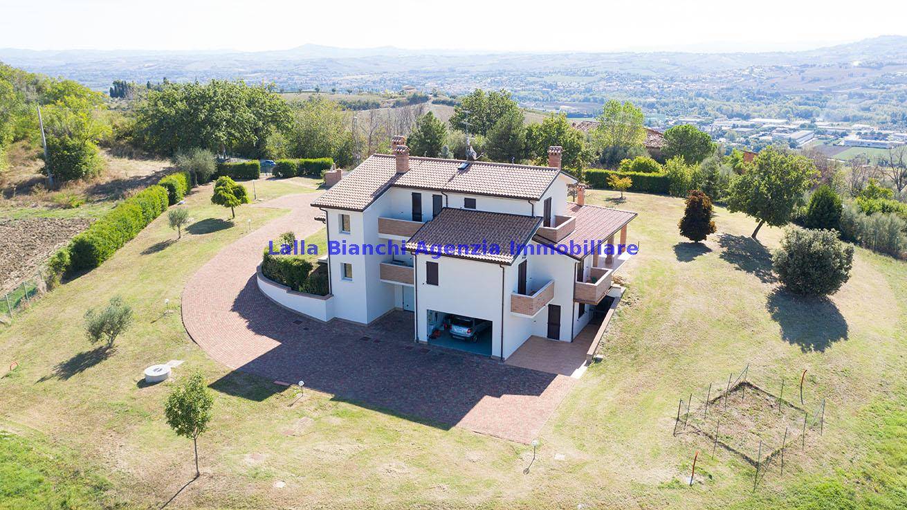 ZONA SAN CLEMENTE (RN) 7 min. dalla costa adriatica, Riccione...: COD. RIF. V19036 - L 'AGENZIA IMMOBILIARE LALLA BIANCHI propone in vendita meravigliosa villa di lusso monofamiliare con due ingressi indipendenti (possibilità bi-familiare) costruita nel 2009 stile - villa country in stile classico - Sita in località San Clemente (Emilia Romagna, Rimini) con le seguenti caratteristiche: Interni: 400 mq; Esterni: 0.75 ha; Piani: 3; N. camere: 15 (4 camere da letto); Bagni: 6; Giardino: si; Alberi: si; Pozzo: si; Descrizione in breve - Villa moderna in posizione collinare con vista panoramica a 360, vista mare, prossima alla Costa Adriatica (7 Km, 11 minuti) e alle città di Rimini, Riccione e San Marino, un territorio ricco di storia, tradizioni e con alta vocazione alla ospitalità estesa al turismo enogastronomico, del divertimento e religioso. La proprietà ha un 'architettura stile country classico di prestigio, misto tra il moderno con riprese in stile rurale, riproduzione obbligatoria del preesistente casolare (fine 800) al fine di perseverare l 'immagine della località ambita come zona di Agriturismi e tenute Biodinamiche è dotata di, fibra internet, infissi di pregio, riscaldamento a terra, impianto di allarme ed aria condizionata / pompe di calore, pozzo che si alimenta con acqua piovana che confluisce dai pluviali. Al suo interno è inclusa una taverna semi interrata con splendida area relax e palestra, il piano terra con sala soffitto a doppio volume ed ampia esposizione (alba-tramonto), primo piano e soffitta. Il primo piano non ha rivestimenti e si presta alla completa personalizzazione delle finiture interne, con predisposizione degli allacci: luce, acqua, gas Completa la proprietà un giardino di 7000 mq con alberi, tutta la proprietà recintata che garantisce ottima privacy. Il giardino è dotato di pozzo e impianto per irrigazione centralizzate. Possibilità di realizzazione di piscina attrezzata. La villa si compone di due piani più un 'ampia zona semi interrata, progettati e realizza[…]