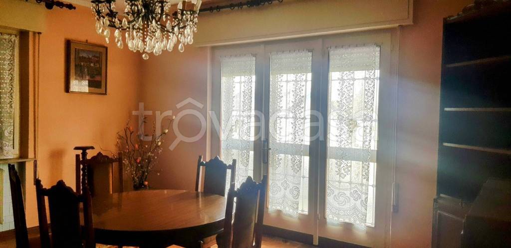 In zona residenziale a Malisana ( Torviscosa ), presentiamo in vendita un appartamento( porzione di bifamiliare) con entrata indipendente di ampia metratura , degli anni ' 70 in buone condizioni, con giardino , cantine e garage in comune . Caratterizzato dal grande terrazzo coperto che troviamo nell'atrio adatto a momenti di relax e cene estive , l'immobile mantiene spazi molto grandi tipici di quel periodo . Composizione : disimpegno. 3 camere da letto matrimoniali , bagno finestrato, ampio soggiorno luminoso con balcone,cucina e ampio tinello adiacente. La casa è tutta su un piano , molto luminosa sui 4 lati di esposizione. Al piano inferiore al quale si accede sia dall'esterno che dall'interno attraverso una scala comune , si accede alla cantina , al garage comune e ad uno spazio che si puo' utilizzare per diversi scopi . Il riscaldamento è autonomo con caldaia a pellet ma con possibilità di allaccio al metano . I pavimenti delle stanze sono in parquet a listelle. L' appartamento ha un gradevole giardino di pertinenza adatto a momenti di convivialità e di tranquillità. L'immobile è adattissimo a famiglie numerose , desiderose di spazi esterni comodi e soleggiati . Adatto a chi possiede animali domestici. Prezzo trattabile