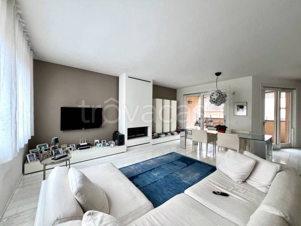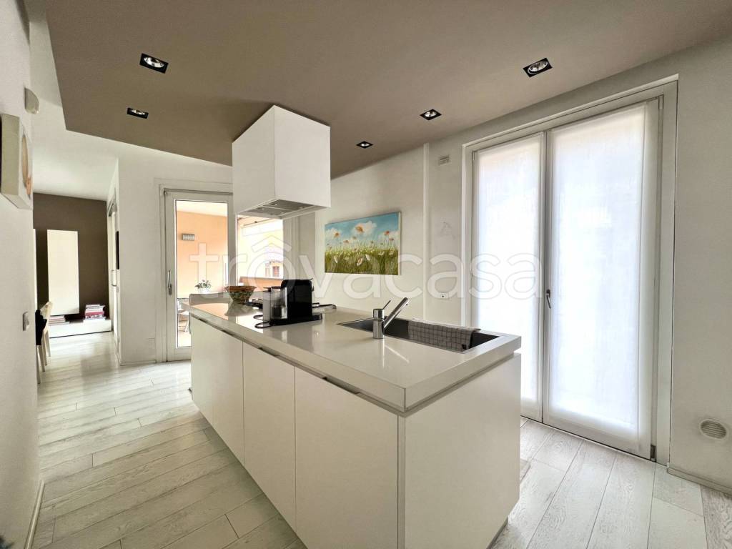 Introvabile porzione di casa completamente indipendente in zona centralissima, a due passi da tutte le comodità. Al piano terra disimpegno di ingresso con scala e ascensore privato che portano al piano primo dove si estende il luminoso living openspace con camino, cucina con isola centrale e grandi vetrate scorrevoli che permettono l'accesso al terrazzo vivibile affacciato alla corte interna dotato di barbecue. Disimpegno notte, camera matrimoniale completa di cabina armadio e balcone, bagno con grandissima doccia e locale lavanderia. Al piano secondo, anch'esso raggiungibile con ascensore privato, troviamo altre due camere da letto, secondo bagno, ulteriore cabina armadio e comodo ripostiglio. Possibilità di acquisto autorimessa doppia di 50 mq a 50.000 euro. Soluzione introvabile e unica nel suo genere. Finiture di ottimo livello, riscaldamento a pavimento, ben tenuta. Da vedere