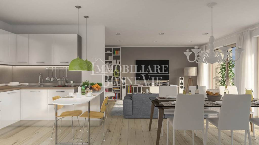 CD333 Immobiliare BonneVie propone in vendita soluzioni di nuova costruzione in Classe A con terrazzino. In quadrifamiliare disponibili n° 2 soluzioni così composte: soggiorno, cucina a vista di notevoli dimensioni, due camere da letto, doppi servizi. Dalla zona giorno doppio accesso terrazzino godibile di 15 mq. Immobili costruiti in termini di massimo risparmio energetico con conseguente con indice 15,3 kWh/m² anno. Capitolati moderni ed innovativi. Di seguito alcune specifiche di costruzione: - Cappotto di isolamento Argisol sia interno che esterno con eliminazione di ponti termici e relativo risparmio energetico. - Doppio solaio: il primo solaio, ovvero quello contro-terra, prevede la realizzazione di un riempimento in ghiaia con formazione di massetto e idonea impermeabilizzazione per evitare umidità di risalita; il solaio interpiano verrà realizzato in termosolaio. Il polistirene espanso impiegato garantirà un elevato isolamento termico costante nel tempo. - Le facciate esterne saranno rasate con l’ausilio di rete in fibra di vetro 20 g/mq ed in seguito tinteggiate. - L’impianto di riscaldamento, di tipo centralizzato con contabilizzatore energetico per ogni singola unità immobiliare, sarà costituito da un sistema con Pompa di Calore aria/acqua ad alta efficienza. - Impianto per riscaldamento degli ambienti a pannelli radianti con posa a pavimento. L'impianto è costituito da tubazioni ad alta resistenza termica e meccanica, posate tutte in un pezzo, che vengono installate su pannelli isolanti ad alte prestazioni termicheed acustiche. Gli impianti a pavimento garantiscono un elevato comfort negli ambienti grazie all'uniforme diffusione del calore su tutta la superficie della casa. - L’edificio sarà dotato di un impianto fotovoltaico centralizzato, installato sulla copertura, che andrà ad alimentare la Pompa di calore e le parti elettriche comuni. - I serramenti saranno in PVC, doppio vetro Mediterranean 2 + body Safe 30 mm - Tapparelle avvolgibili motorizzate che, oltre ad assolvere alla funzione osc[…]