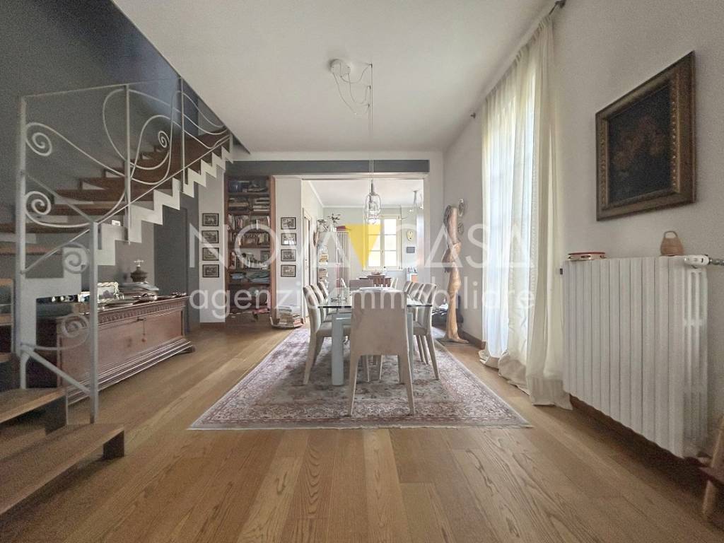 A soli 900 mt dal centro storico, facilmente raggiungibile con percorso ciclo-pedonale, proponiamo affascinante porzione di casa indipendente in stile liberty risalente al 1924 e finemente ristrutturata nel 2004 conservando lo stile architettonico dell'epoca. Questa splendida abitazione rappresenta un perfetto connubio tra eleganza storica e comfort moderno, caratterizzata da alti soffitti e numerose finestre che creano un ambiente spazioso e luminoso. La proprietà è disposta su due livelli abitativi, terra e primo, oltre a cantina al piano interrato e soffitta al piano secondo. Giardino privato di oltre 150 mq ove è presente una piscina interrata (7x4) con nuoto controcorrente. L'abitazione è composta al piano terra da un ampia zona living di circa 80 mq, suddivisa in soggiorno con camino, zona pranzo, luminosa cucina abitabile, disimpegno e bagno. Piano primo composto da tre camere da letto, bagno, terrazzo e balcone. Al piano secondo troviamo una graziosa mansarda composta da quattro vani con travi a vista e lucernari. Al piano interrato dispone di una comoda cantina di circa 30 mq adibita a lavanderia e locale caldaia. Autorimessa singola con accesso diretto all'abitazione. L'immobile fa parte di un contesto condominiale ma gode di totale indipendenza ad eccezione dell'ingresso carrale; si trova in buone condizioni e presenta pavimenti in parquet di rovere, serramenti in legno con doppio vetro, porta blindata, aria condizionata, allarme e cancello elettrificato. Maggiori informazioni e visite in loco previo appuntamento chiamando in studio al numero 0373.284285