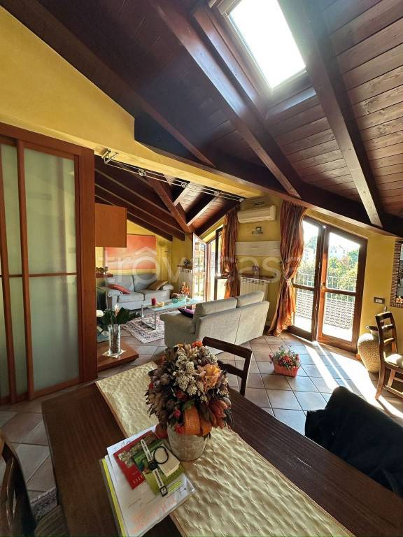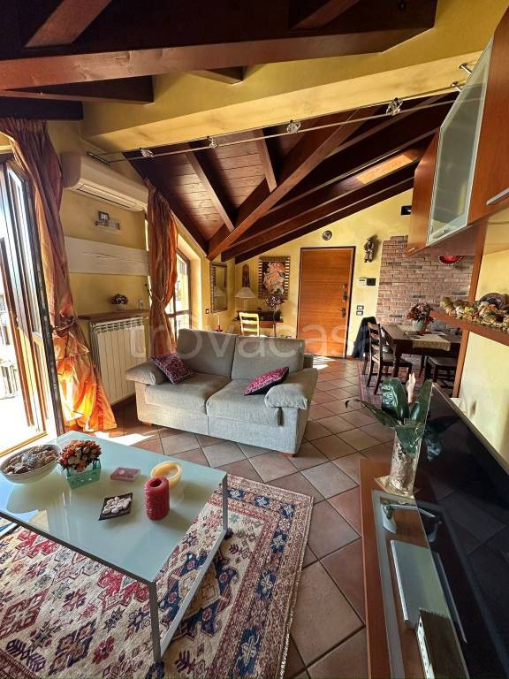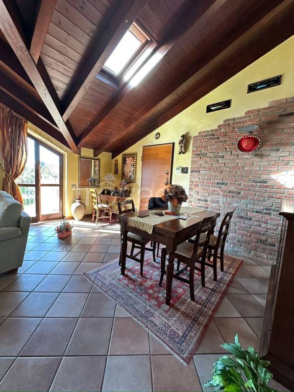 A Robbiate, in zona residenziale e tranquilla, proponiamo in vendita bellissimo trilocale posto al secondo ed ultimo piano di una piccola palazzina di soli 6 appartamenti. L'immobile, di 89 mq commerciali, è cosi suddiviso: - living con angolo TV e zona pranzo. Ambiente molto luminoso grazie al velux e alle due porte finestre che conducono al balcone; - cucina abitabile finestrata con tavolo da pranzo; - camera matrimoniale con doppia finestra e velux. Armadio a muro e spazio per cassettiera; - seconda camera arredata con doppio letto singolo ed armadio a muro. Velux e portafinestra che conduce al balcone; - bagno principale con doccia; - lavanderia con lavabo, wc e attacchi per lavatrice; - piccolo disimpegno con armadio a muro su misura. Completa la proprietà il box di 37 mq (prezzo aggiuntivo di € 40.000), doppio in lunghezza, pavimentato, con basculante motorizzata e impianto di allarme. L'appartamento si presenta in ottimo stato di manutenzione, pavimenti in cotto nella zona giorno e cucina, parquet nelle camere e soffitto con travi a vista. Impianto di allarme e impianto di climatizzazione con split in tutti i locali (cucina compresa); termoautonomo con caldaia privata. L'immobile viene venduto completamente arredato come da foto. Contattateci per ulteriori info e visite