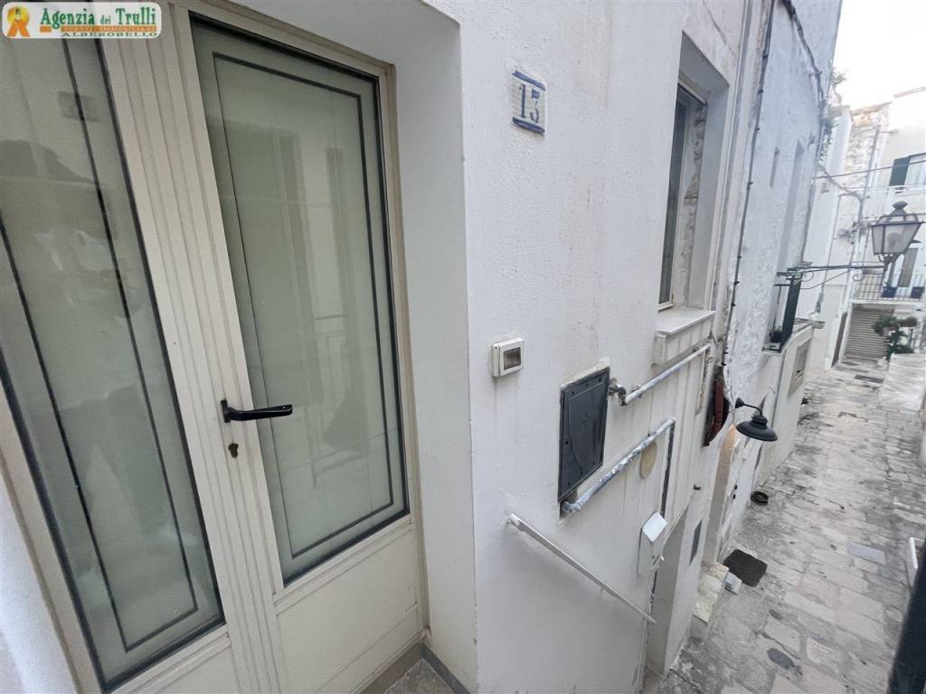 Ubicazione: nel cuore del centro storico di Cisternino, a meno di 100 metri dalle due piazze principali e facilmente raggiungibile da Porta Piccola. Descrizione: la proprietà comprende un’abitazione indipendente che si sviluppa su tre livelli. Al piano rialzato c'è il soggiorno con la volta a stella oltre ad un cucinotto e il bagno. Al piano superiore si trova un'ampia camera da letto, anche questa stanza ha la volta a stella. Dalla camera da letto c’è una scala che conduce al torrino dove c'è la zona lavanderia e la porta di accesso al terrazzo di proprietà esclusiva. Condizioni: la ristrutturazione risala ad alcuni anni fa e non è mai stata completata per quanto riguarda gli infissi e gli impianti. In una eventuale nuova ristrutturazione si potrebbe rimuovere l'intonaco almeno dalle volte per avere le stelle con pietra a vista. Utenze: tutti gli impianti sono allacciati alle utenze cittadine, inoltre vi è una riserva idrica sul terrazzo, impianto di riscaldamento con termosifoni alimentati da caldaia a gas. Spazi esterni: terrazzo accessibile con scala interna, posto all'ultimo piano dello stabile e di proprietà esclusiva