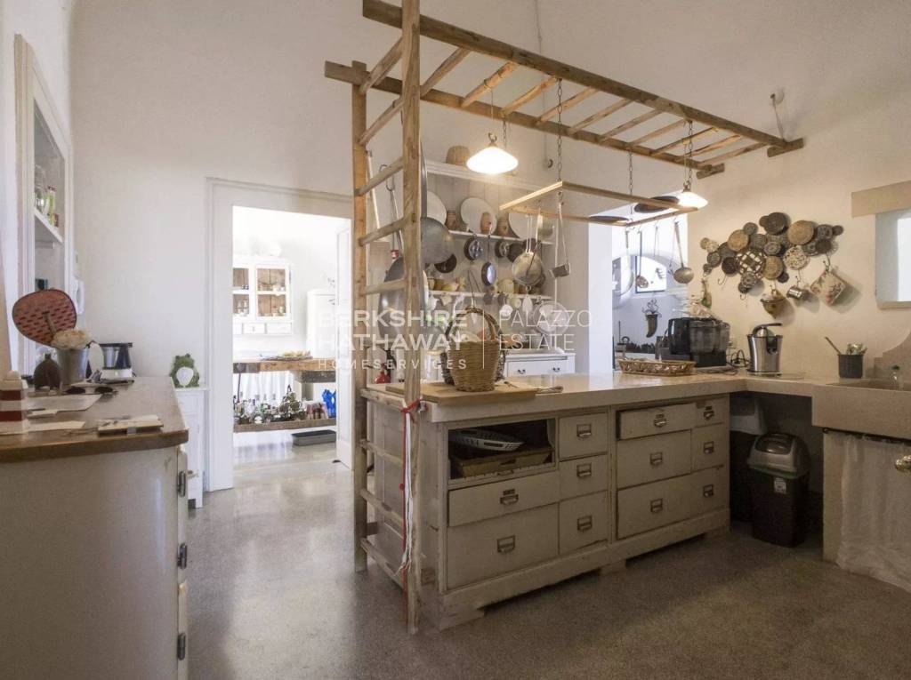 Nel cuore di Specchia Gallone, affascinante località ricca di immobili storici, che rievocano la bellissima architettura salentina, si vende “Palazzo Paradiso” un’antica dimora baronale del 1800, riportata interamente all’apice del suo fascino. Situato a pochi chilometri dalle rinomate località marine di Otranto, Santa Cesare Terme e Castro, attualmente il palazzo è adibito a struttura ricettiva. Oggetto di un’attenta ristrutturazione conservativa, internamente presenta 10 camere tutte con bagno privato, disposte in parte a piano terra, dove troviamo in prevalenza soffitti con volte a stella (spigolo), e in parte a piano primo, con soffitti a padiglione. Varcato il portone d’ingresso, si presenta un ampio androne, sul quale si affacciano gli accessi di due camere, la grande porta vetrata che dà al giardino, e l’arco di pietra del vano scala. Oltrepassato quest’ultimo, troviamo una terza camera da letto, un bagno di servizio, un’uscita secondaria, e la maestosa scalinata con ringhiere in ferro battuto, che conduce al piano primo. Un ballatoio/corridoio permette di accedere alle tre sezioni che compongono il primo piano, ovvero la cucina, una stanza che funge da disimpegno per tre camere, e il terrazzo-balcone che permette di accedere alle restanti tre stanze. La cucina, composta da più vani tutti comunicanti tra loro, oltre che un grande e funzionale piano cotturarealizzato su misura, presenta la particolarità di una antichissima stanza-camino, quest’ultimo ancora funzionante, e di un pozzo originario ancora in uso. Il terrazzo a livello si presenta come uno spazio con pianta quadrata per poter comodamente mangiare all’aperto, per poi restringersi in una balconata con un’antica ringhiera in pietra. La struttura è completata dal suo spazio esterno, un terreno di circa 2000 mq, dove un ampio cortile a “chianche”, tipica pavimentazione in pietra salentina, conduce all’area relax, dominata da una piscina in cui trovare ristoro nelle calde giornate d’estate. Un suggestivo colonnato attraversa il rigoglioso giar[…]