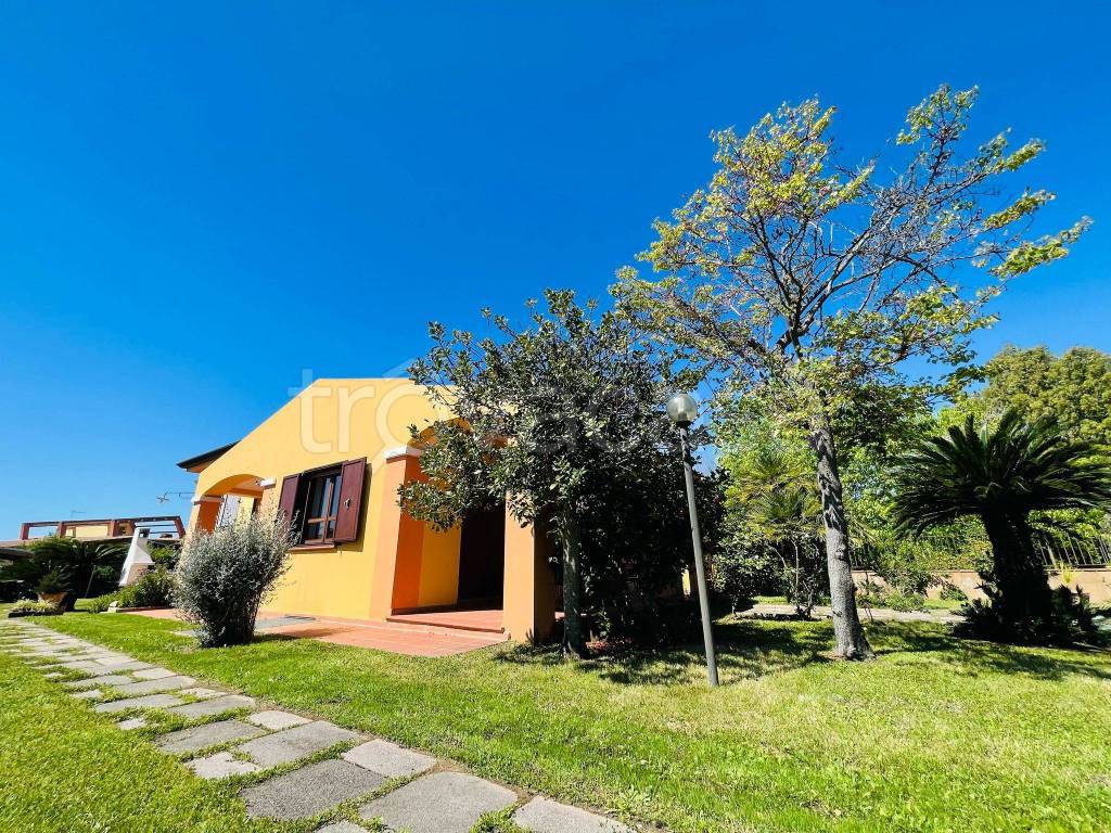 Scopri questa ampia Villa signorile, un vero angolo di paradiso a soli 300 metri dalla splendida Baia di San Gemiliano raggiungibile a piedi, questa proprietà è perfetta per chi cerca un rifugio tranquillo senza rinunciare alla comodità dei servizi. Immersa in un ampio Giardino Curato, con palme e piante ornamentali, offre un'atmosfera di relax e bellezza. La Villa dispone di 4 camere da letto spaziose e 2 bagni, uno dotato di vasca e l'altro di box doccia, ideali per soddisfare ogni esigenza. Gli interni sono arricchiti da serramenti e cucina realizzati a mano in legno di pregio. Le 3 ampie Verande Coperte, di cui una panoramica, sono perfette per pranzi e cene all’aperto, complete di barbecue per momenti indimenticabili con amici e familiari. Non mancano i posti auto coperti, un ripostiglio soppalcato e una dispensa, ideali per riporre tutto ciò che serve tenendo comunque il resto dell’abitazione in ordine. Con una superficie commerciale di 200 m² questa villa è la scelta ideale per chi cerca comfort e relax in un contesto esclusivo. Non perdere l'opportunità di vivere in questo splendido immobile
