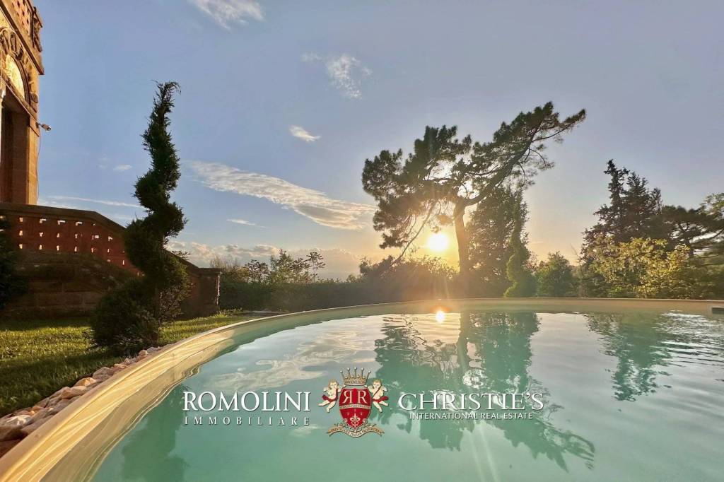 Sulle pittoresche colline del Valdarno, a pochi minuti da Loro Ciuffenna (premiato come uno dei “Borghi Più Belli d’Italia”), villa d’epoca in stile Gilded-Age in vendita. La proprietà (oltre 900 mq) offre viste panoramiche sulle colline circostanti ed è circondata da un parco di 7.550 mq con oliveto (120 piante). Questa prestigiosa proprietà è ideale come residenza privata di lusso o come struttura ricettiva di charme. La combinazione unica di storia, comfort moderni e vicinanza a città note come Firenze e Arezzo rende la proprietà molto attraente sotto tutti gli aspetti. Situata in una posizione tranquilla e panoramica, la villa è facilmente raggiungibile tramite strada asfaltata e in meno di 5’ di auto si può raggiungere il borgo di Loro Ciuffenna dove sono disponibili i servizi essenziali. La vicina autostrada A1 (circa 10km) permette di raggiungere Firenze in meno di un’ora di auto. DESCRIZIONE DEGLI EDIFICI, STATO E FINITURE La proprietà (911 mq), pronta per essere abitata, è stata accuratamente ristrutturata nei suoi due piani principali, mantenendo il fascino storico e integrando comfort moderni. Gli interni presentano finiture eleganti e dettagli raffinati, fondendo l’architettura classica italiana con il lusso contemporaneo. La villa comprende 5 (fino a 6) camere e 6 bagni, progettati per offrire il massimo comfort mantenendo lo stile autentico della proprietà. Elementi rari e distintivi includono una sala cinema in stile Art Deco, la palestra in stile vittoriano che combina l’eleganza d’epoca con la funzionalità moderna e una spa panoramica nella torre per un’esperienza di relax esclusiva. Delle 5 camere, due sono suite di lusso e la principale è corredata da un’ampia cabina armadio, terrazza esposta ad ovest verso i tramonti, un bagno en-suite in stile vittoriano, oltre all’accesso esclusivo alla torretta. I piani inferiori ospitano cantine e una limonaia, attualmente allo stato grezzo, offrendo un grande potenziale di personalizzazione. A seconda delle preferenze dell’acquirente, questi spazi[…]