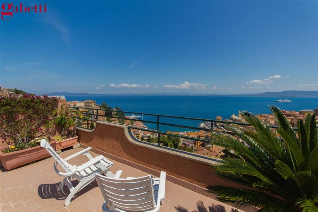 PORTO SANTO STEFANO – Strada del Sole, vendesi appartamento mansardato al secondo-ultimo piano (max 34 gradini), con grande terrazza e con bellissimo panorama sul mare. L’appartamento ha una stupenda terrazza con ombreggiante arredata per vivere all’aperto, dalla quale si vede il golfo della Piazza di Porto Santo Stefano ed il Palio marinaro di mezz’Agosto. L’appartamento ha altezza di 2,70 metri nel colmo. Composto da soggiorno con doppia porta finestra che lo rende luminoso, la cucina con altezza vivibile è aperta e comunica con la zona pranzo, e nella zona notte abbiamo tre camere da letto con due bagni; una delle camere esce nel terrazzino laterale, mentre la camera doppia ha una bella vista sul mare. Ogni ambiente è finestrato, i bagni sono molto luminosi grazie a delle finestre-lucernario, riscaldamento autonomo a metano e climatizzazione in tutti gli ambienti. Misure: l’appartamento 115 mq La terrazza 62 mq Il terrazzino 6 mq La metratura commerciale è mq 128 Le presenti informazioni sono indicative e non costituiscono elementi contrattuali