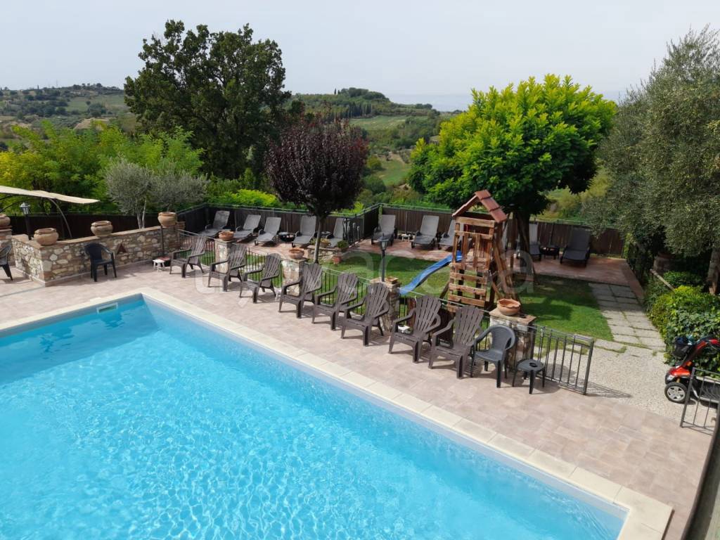 Narni proponiamo in vendita uno splendido compendio immobiliare sito nella fraz. Vigne, loc. Colle Abramo e loc. Acerella, attualmente destinato ad uso agriturismo ed attività ricettiva, comprendente vari appartamenti, pertinenze, giardini, oltre un terreno agricolo, un uliveto (circa 120 piante) e parte di terreno boschivo. Ubicato in un contesto riservato e tranquillo, gode di una bellissima e spettacolare vista sulle colline circostanti ed è fornito di acqua potabile, energia elettrica, telefono, ADSL e gas. Strategica la posizione dalla quale è facile raggiungere il centro abitato della frazione Vigne e ben collegato con le città di Narni, Otricoli e Terni. Il compendio ha le caratteristiche di un piccolo borgo circondato da circa 1000 mq di corte e giardini, affacciato sulle colline che ne rendono davvero unico lo scenario; composto da quattro corpi principali suddivisi in diversi appartamenti di varie metrature, tutti inseriti perfettamente all'interno del contesto dove Ubicati. Ogni appartamento è indipendente, arredato e dotato di tutti i comfort, servizi igienici privati, patio o terrazzo privato, cucine complete ed arredate. Il totale degli appartamenti destinati all'attività agrituristica è 8, oltre ad un ampia sala hobby (attualmente ad uso del proprietario) di circa 50 mq, un locale ad uso gazebo per il relax degli ospiti, una tettoia ad uso autorimessa di circa 25 mq più un locale sempre ad uso autorimessa di circa 22 mq ed una bellissima piscina salata 5 x 10 con relativo solarium, zona sauna e servizio con doccia per gli ospiti, zona giardino con altalena, calcio balilla, tavolo da pingpong e barbeque. Nella parte scoscesa del terreno si trova anche un campetto da calcio. Per informazioni ed appuntamenti contattare i numeri 063017748 - 3200484047